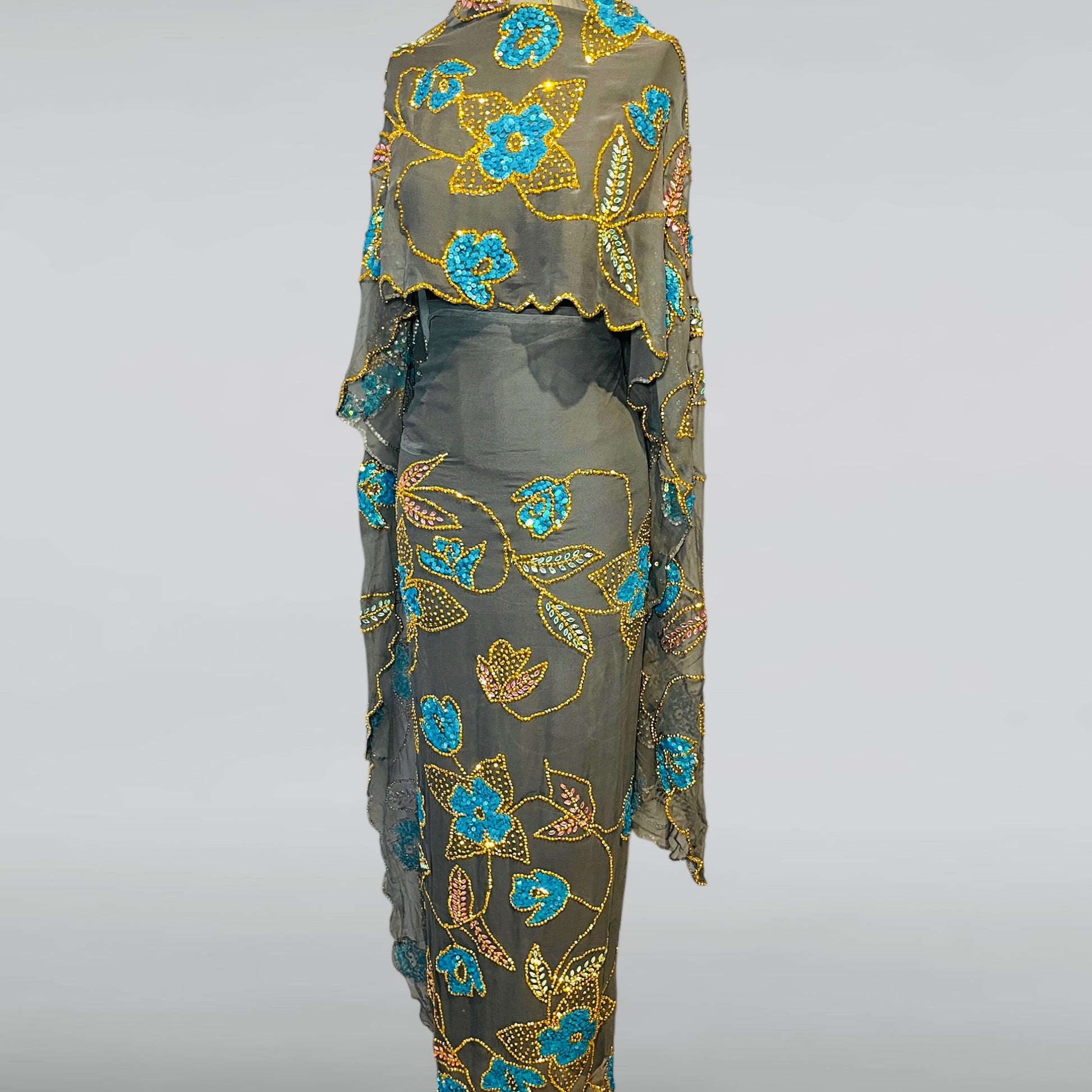 Discover the stunning Inaya Toub, designed with a captivating blend of fabric and rhinestone colors. Expertly crafted, this toub is guaranteed to turn heads.