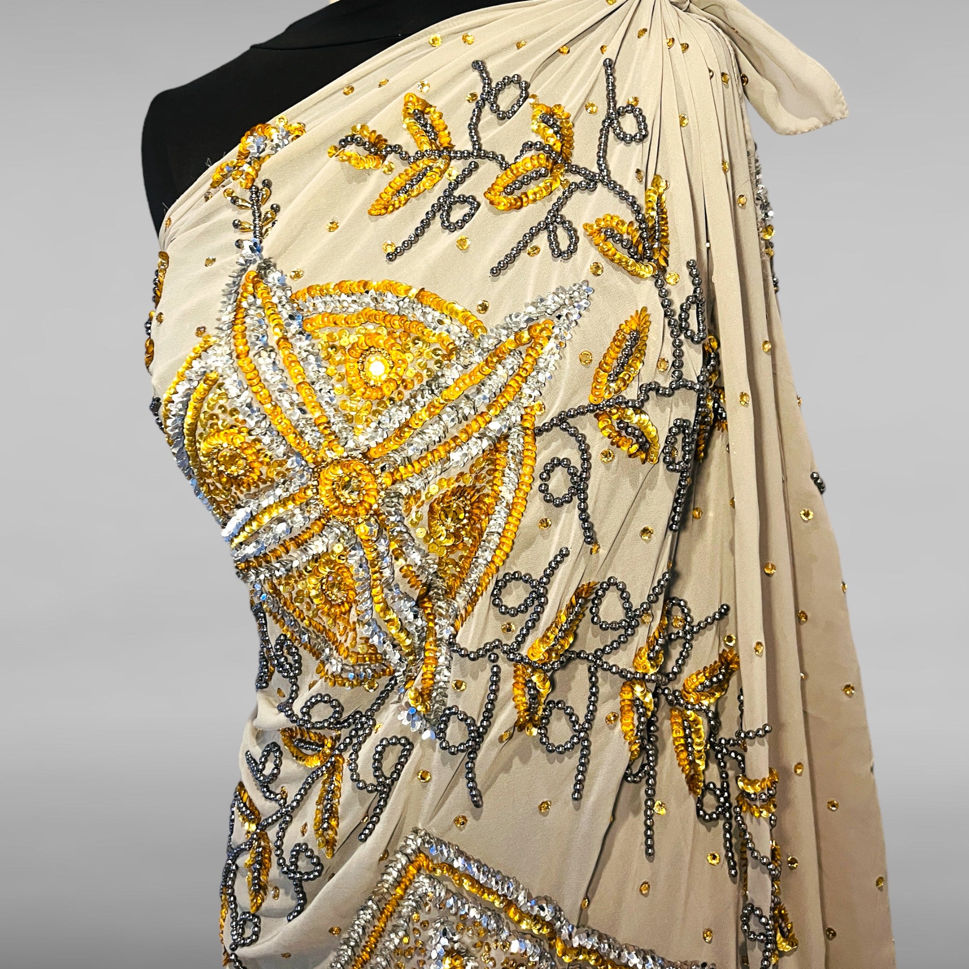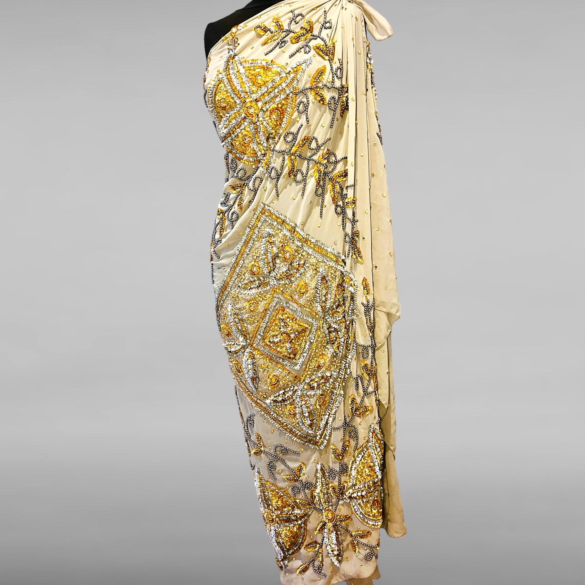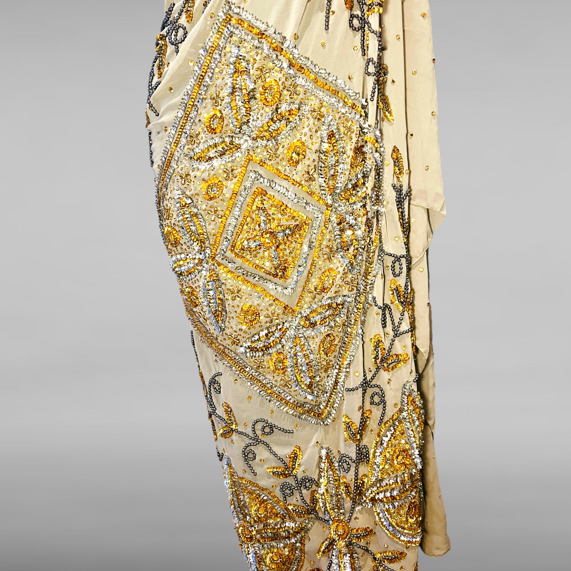 Nyabeel Lawa is stunning, adorned with intricate pattern designs.The combination of beading, sequins, and rhinestones creates a beautiful and unique appearance. Perfect for making a statement at any special occasion.